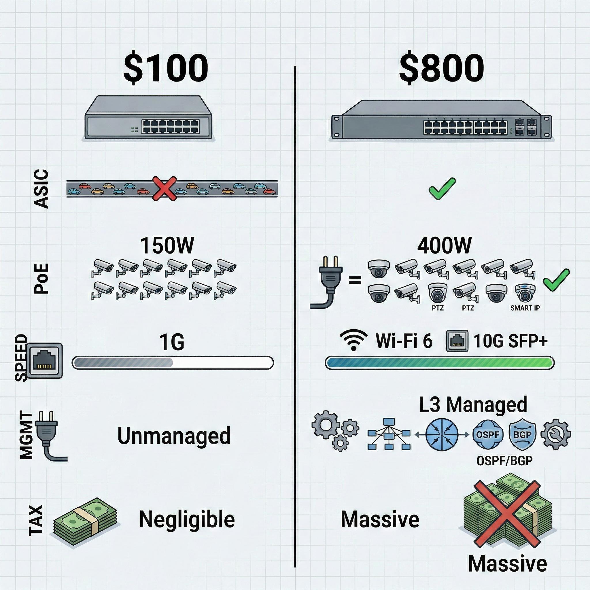 You search for “24-port Gigabit PoE switch.” One brand quotes $100. Another well-known enterprise brand quotes $800 for a product with seemingly identical specifications.