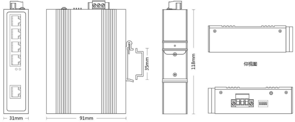 | TH-4F0204 | Unmanaged Industrial Switch, 2x100Mbps SFP Port, 4×10/100M RJ45 Port |